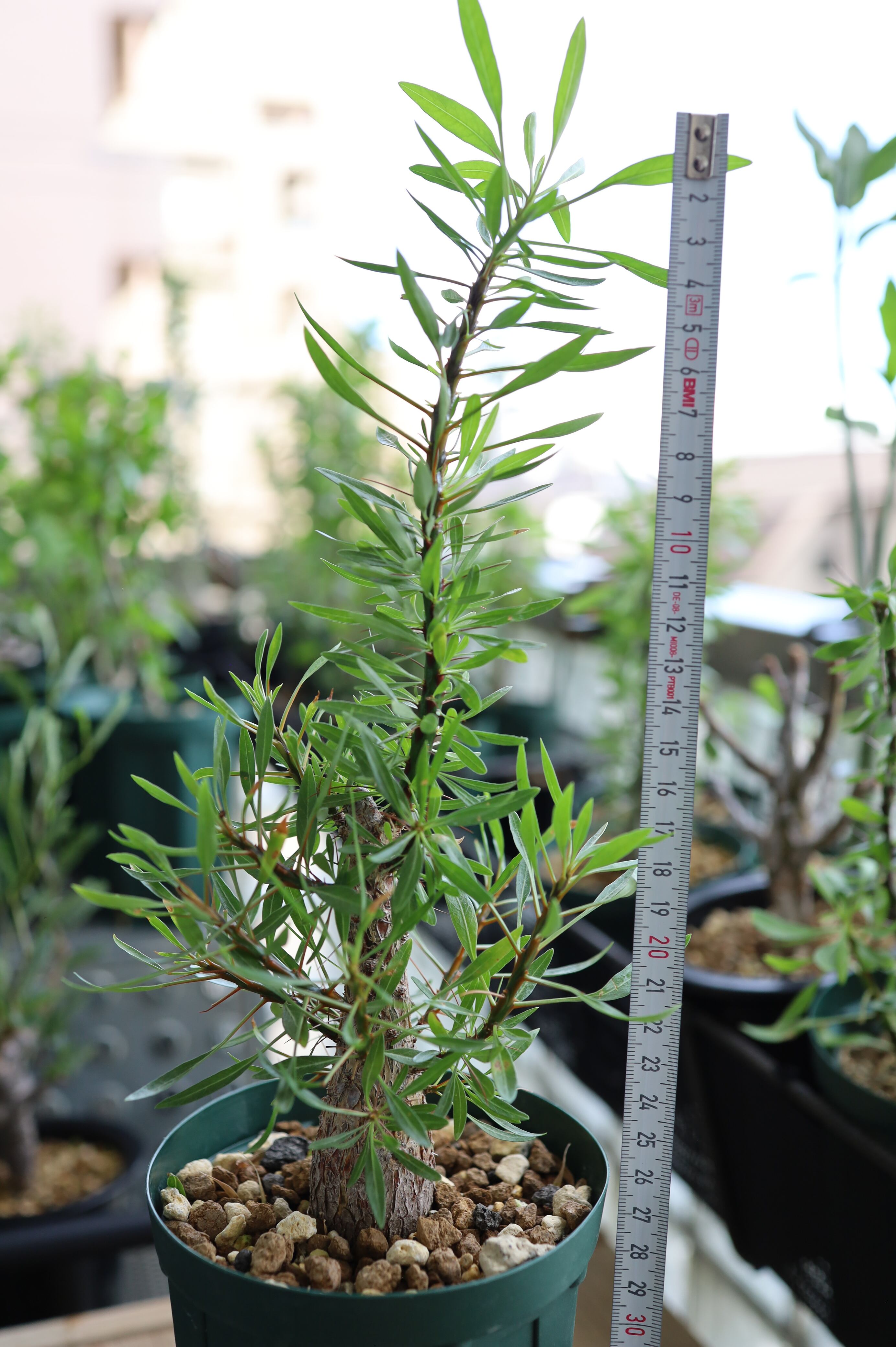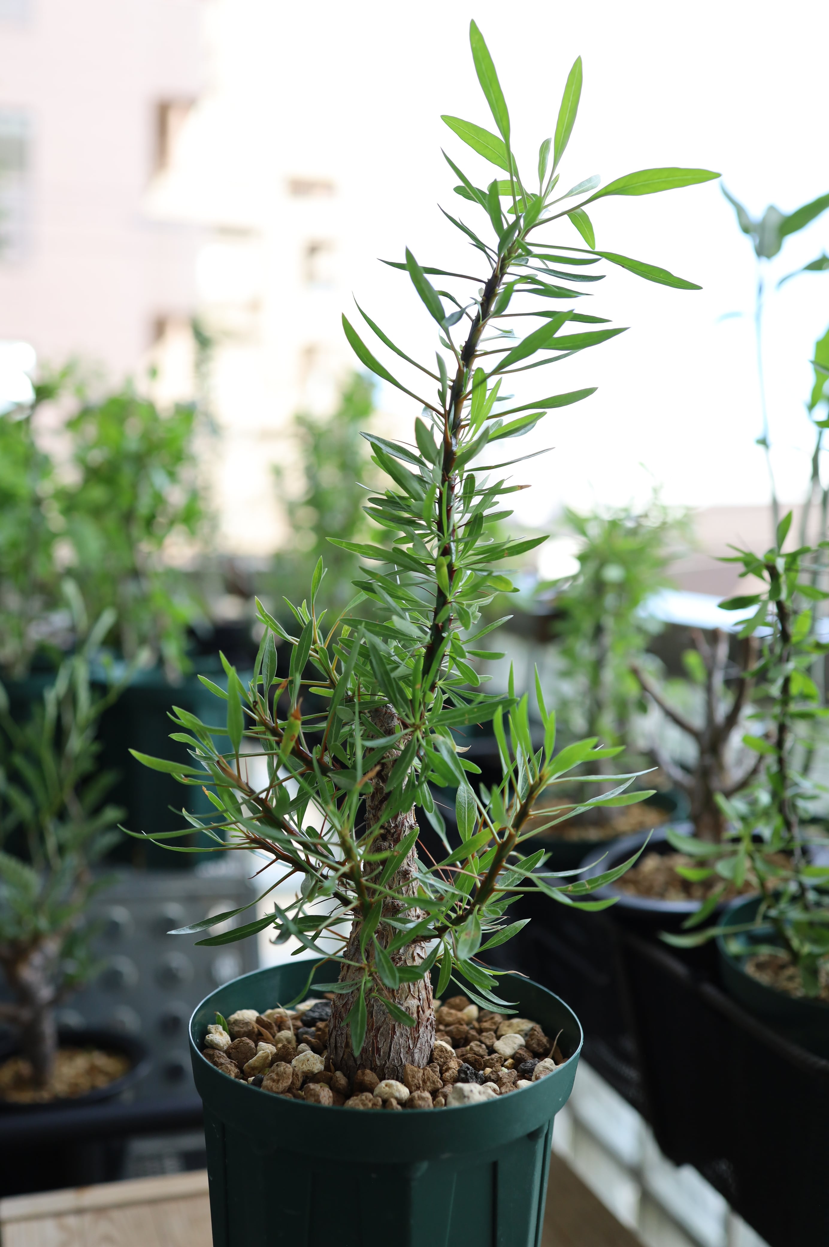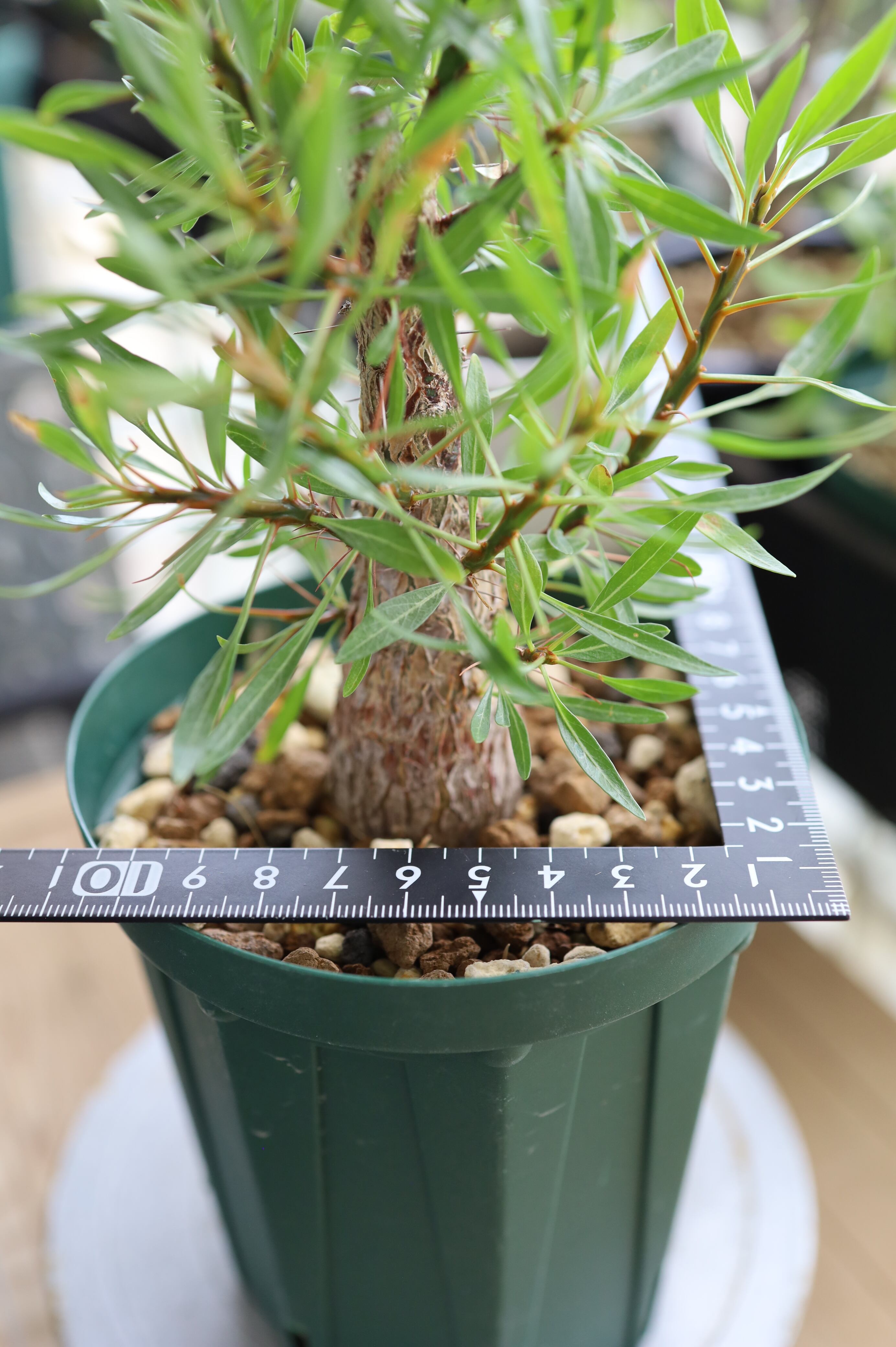 今シーズンは枝葉の展開も良好で、新葉もすでに芽吹き始めています。状態も非常に良く、伸びやかな枝ぶりと発色の良い棘が目を引く、スタッフ一押しの良形個体です。