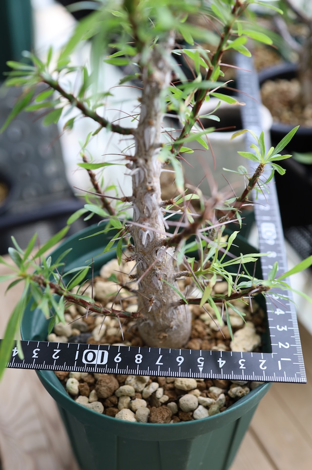 今シーズンは枝葉の展開も良好で、新葉もすでに芽吹き始めています。状態も非常に良く、伸びやかな枝ぶりと発色の良い棘が目を引く、スタッフ一押しの良形個体です。
