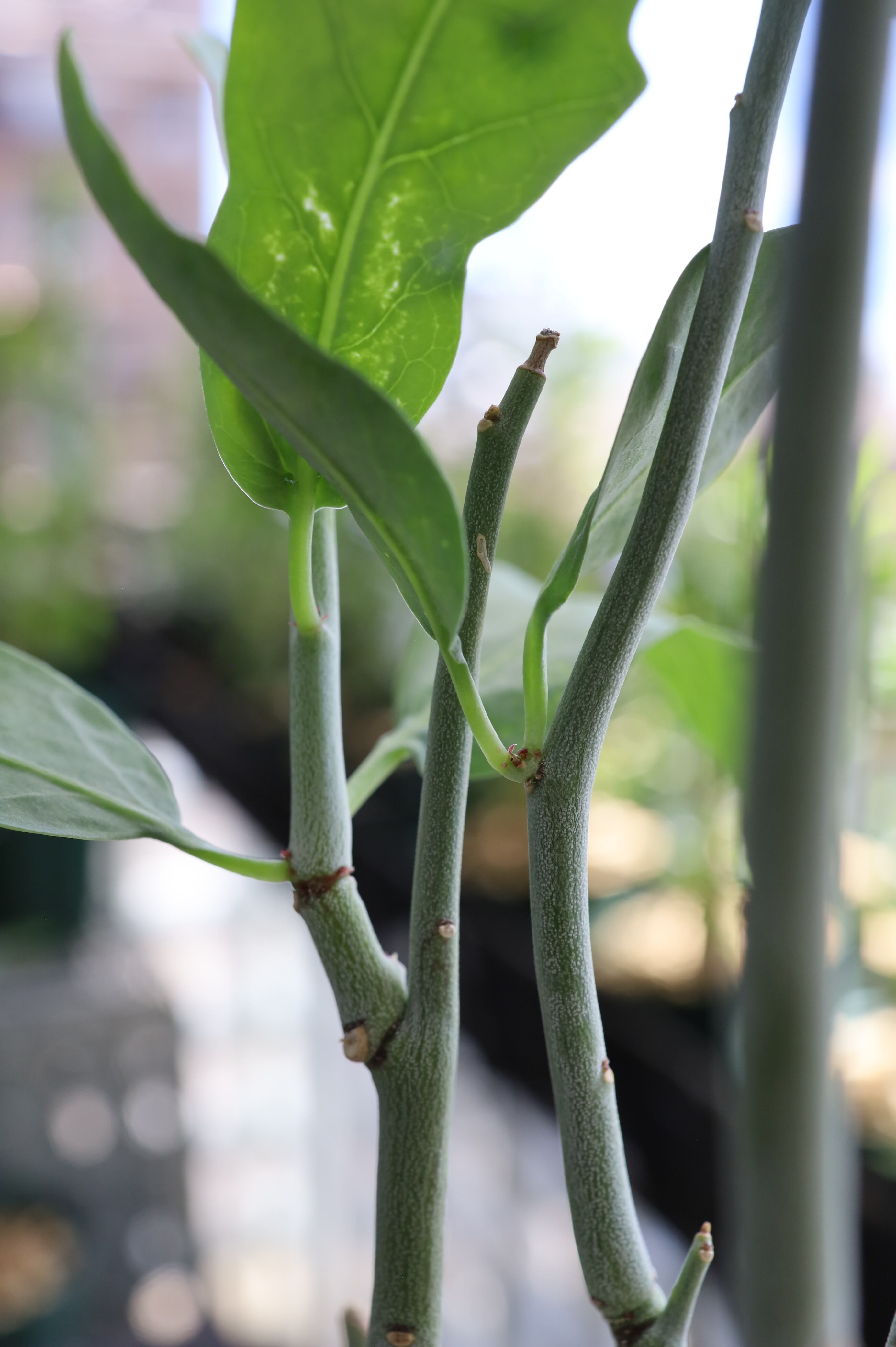 まだ若い枝ですが、将来的には塊根部がふっくらと育ってくる楽しみも。